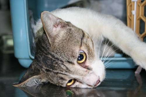 上個月看他臉腫了起來, 有餵他消炎藥...還是趕快紮才不會到處配種打架..