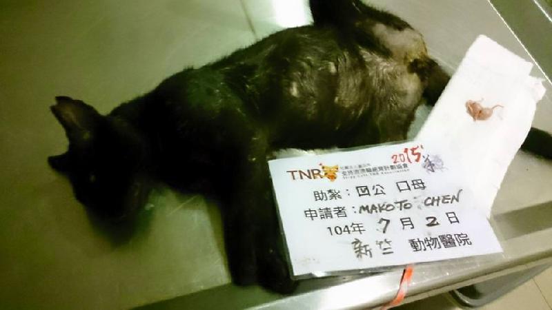誘捕者暱稱: Makoto Chen 性別: 公 花色: 黑 誘捕地點: 新竹市經國路 結紮醫院: 新竺動物醫院 結紮費用: 800 助紮者: 已付款:典媽x3 額外醫療費用申請: 特別說明與誘捕心情: 這隻小黑是最近認識的一位中途住家附近的貓,已餵養一陣子,當地因缺乏TNR觀念,加上環境周遭適合浪貓居住,導致貓咪數量與日俱增,粗估起碼超過10隻以上,不論白天夜晚,貓咪蹤影隨處可見,而小貓數量也同樣可觀,幾乎生活在廢棄屋裡或人家屋簷上。也因為沒有結紮的情形下,常發生小貓被汽機車壓死的狀況,讓人極度不忍,中途小姐已經救過一隻,加上自己本身手上貓狗數量過多,僅能餵食無法再行負擔結紮費用,故向協會求援,希望可以幫忙協助結紮,避免憾事一再重演,也讓當地貓咪數量獲得控制,可以好好生活,結紮費用再麻煩各位協助,謝謝!