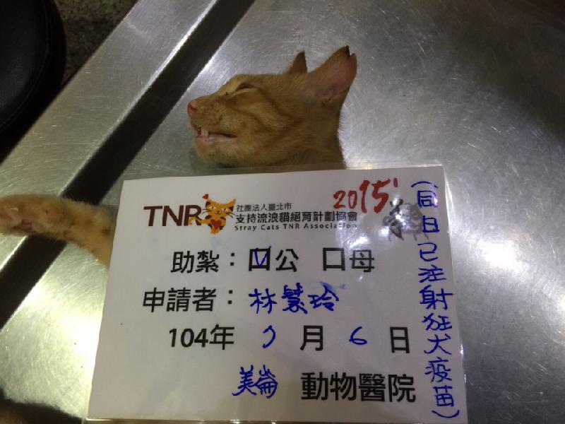 花色: 橘虎斑 誘捕地點: 花蓮收容所
