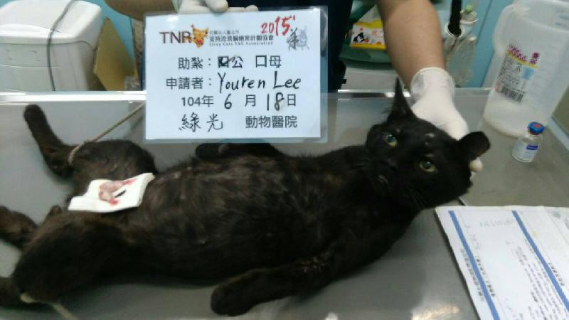 誘捕者暱稱: Youren Lee 性別: 公 花色: 黑貓 誘捕地點: 永康公園 結紮醫院: 綠光動物醫院 結紮費用: 800 助紮者: 已付款:張秀秀x1, Jill Pengx2 額外醫療費用申請: 特別說明與誘捕心情: 每天晚上到公園散步的時候