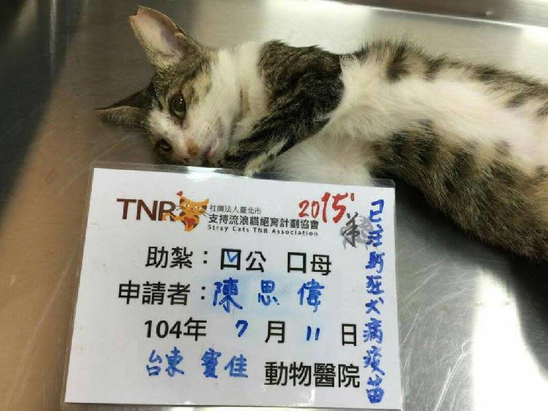 花色: 灰白虎斑 誘捕地點: 台東市中華路二段
