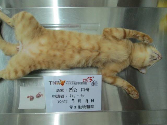 花色: 橘子貓 誘捕地點: 屏東縣竹田驛站