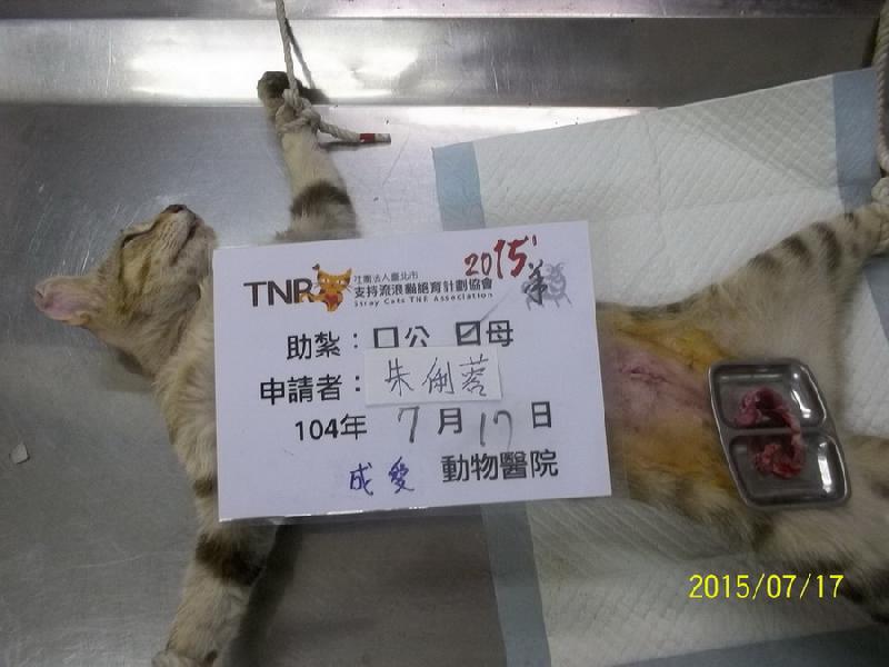 結紮醫院: 成愛動物醫院 結紮費用: 1500