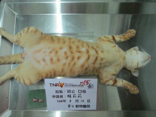 8月13日在屏東市中華路路口誘捕到,8月14送至愛生醫院結紮,3日即可出院,謝謝協會與廣大捐贈者的愛心,讓貓貓與人類得以和平相處.