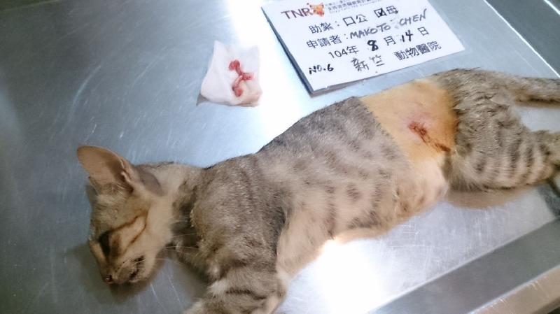 誘捕者暱稱: Makoto Chen 性別: 母 花色: 虎斑 誘捕地點: 新竹縣芎林鄉 結紮醫院: 新竺動物醫院 結紮費用: 1500 助紮者: 已付款:Cecilia Shihx1, 廉彤彤x4 額外醫療費用申請: 特別說明與誘捕心情: 這是向協會申請的新竹芎林專案,生活在養豬場周遭的浪貓,生活環境很差,數量又過多,愛媽負擔大導致一天只能吃一餐,很多貓咪都營養不良,最後只能吃餿水或抓老鼠,身體健康都堪慮,經向協會申請通過後,還得到協會專人專程南下協助捕捉,光一個早上就捕捉29隻,成效豐碩,讓貓咪從此可以擺脫發情交配生育的循環惡夢,控制數量,讓貓咪可以獲得更穩定的生活,也讓愛媽更有能力照顧他們,結紮費用龐大,還請大家多幫忙,感謝!