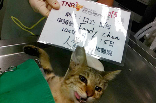 這隻母貓個性乖巧,誘捕過程順利,送到醫院時發現貓咪背部有一處傷口,有申請治療,用打針+敷藥,住院期間貓咪食慾良好,復原情形良好,9/22已經接出院原地放回。