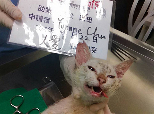 會遇到這隻白貓是因為看到以前結紮過的市場外面又有小隻的貓跑來跑去,才尋線找到她~小貓已抓回準備送養。白貓到醫院麻醉後,因嘴巴微開才發現她的牙齦有些紅腫,口臭,牙結石也很嚴重,有牙周病,所以順便申請小額醫助幫她治療。