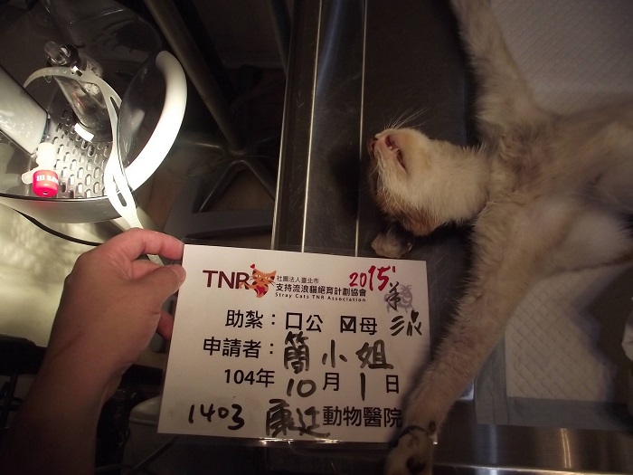 結紮醫院: 康廷動物醫院 結紮費用: 1500