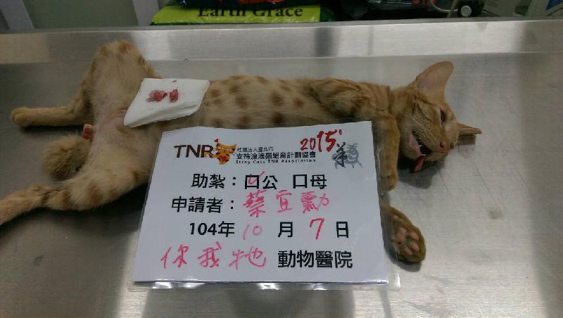 結紮醫院: 你我牠動物醫院 結紮費用: 800