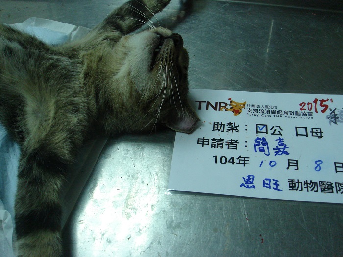 其實原本是知道有幾隻母的還沒處理好結紮...但突然間冒出一隻未紮的大公貓...所以也就必須一併處理...