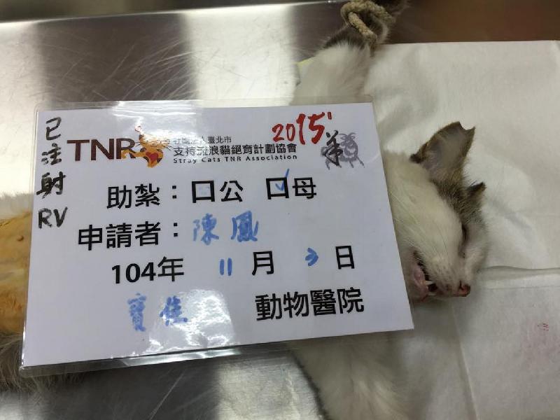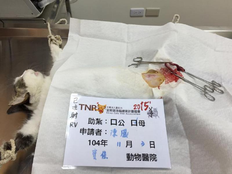 結紮醫院: 寶佳動物醫院 結紮費用: 1500