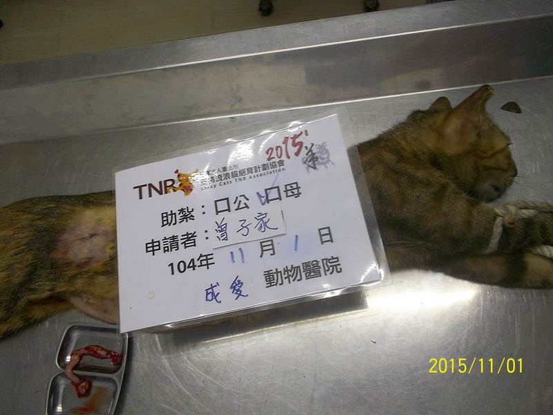 結紮醫院: 成愛動物醫院 結紮費用: 1500