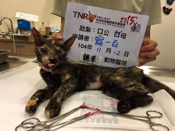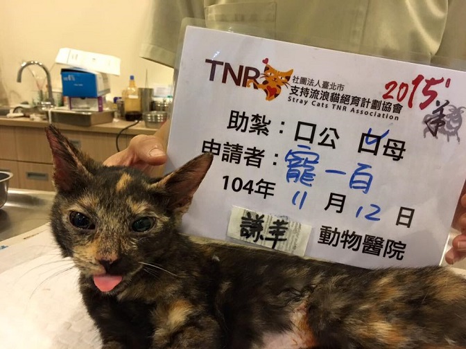 地方誘捕進入收容所的玳瑁母貓...透過協會幫忙.已經完成節育手術.醫藥費再請大家幫幫忙囉~