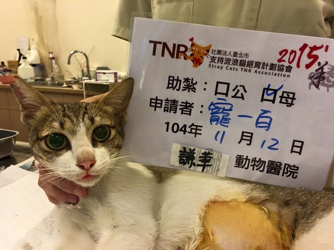 地方誘捕進入收容所的白底虎斑母貓...透過協會幫忙.已經完成節育手術.醫藥費再請大家幫幫忙囉~