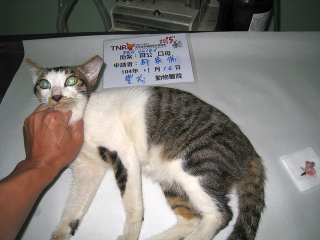 花色: 白底虎斑 誘捕地點: 振華里一餐廳防火巷