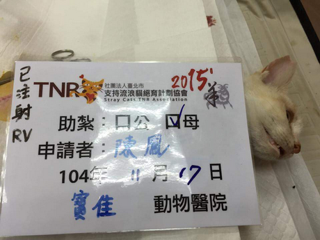 結紮醫院: 寶佳動物醫院 結紮費用: 1500