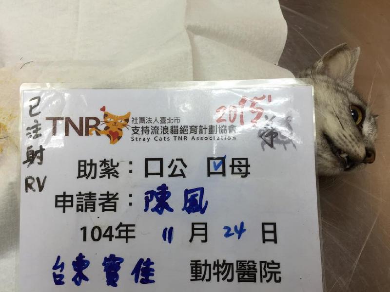花色: 灰白 誘捕地點: 台東知本大學路
