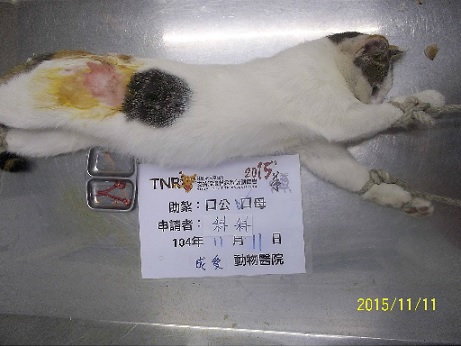 結紮醫院: 成愛動物醫院 結紮費用: 1500