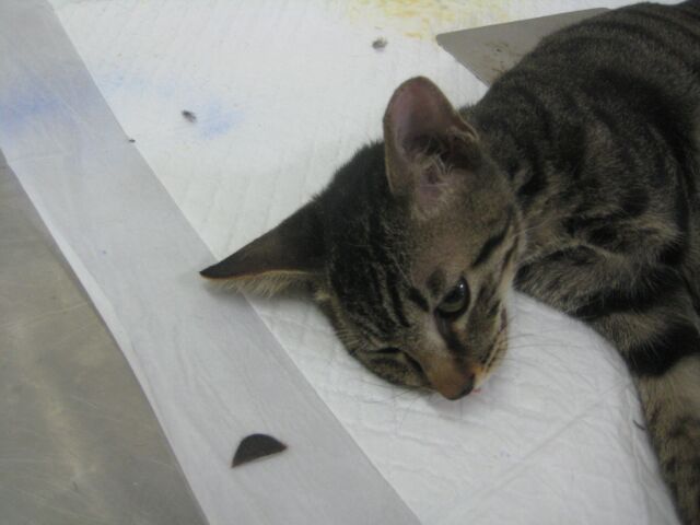 牠的媽媽已經生過好幾次又一直抓不到母貓,四隻小貓都漸漸長大,怕又懷孕一直生就趕快要把牠們都抓紮,牠是被我抓到的第二隻,感謝大家愛心的資助牠們的結紮費用,減少流浪貓數量