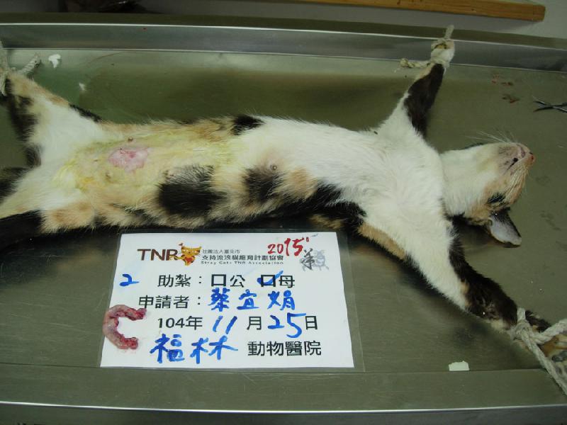 結紮醫院: 福林動物醫院 結紮費用: 1500