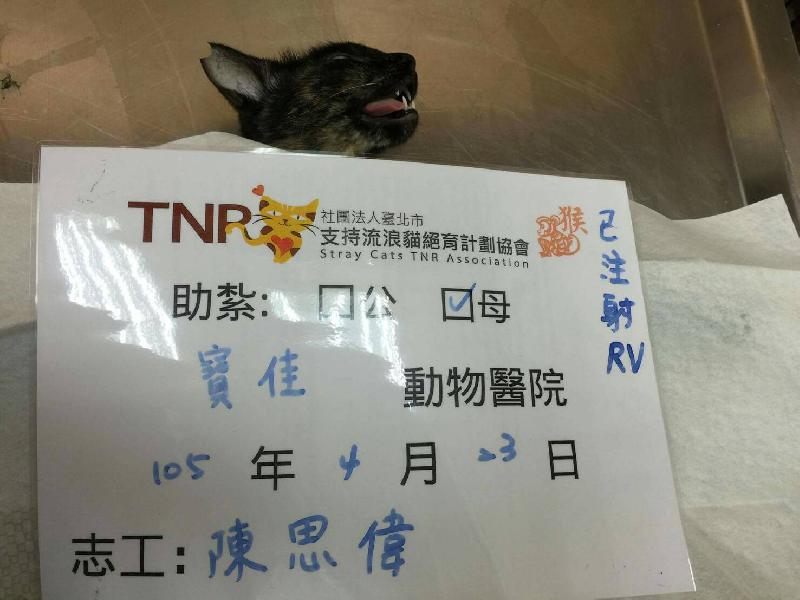結紮醫院: 寶佳動物醫院 結紮費用: 1500