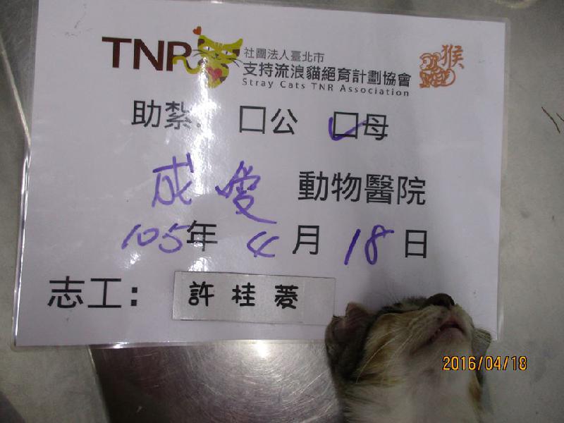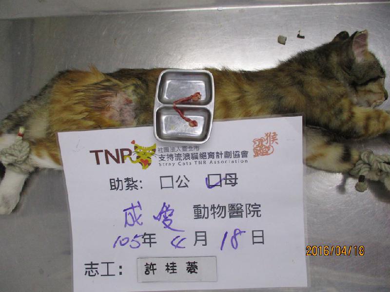 結紮醫院: 成愛動物醫院 結紮費用: 1500