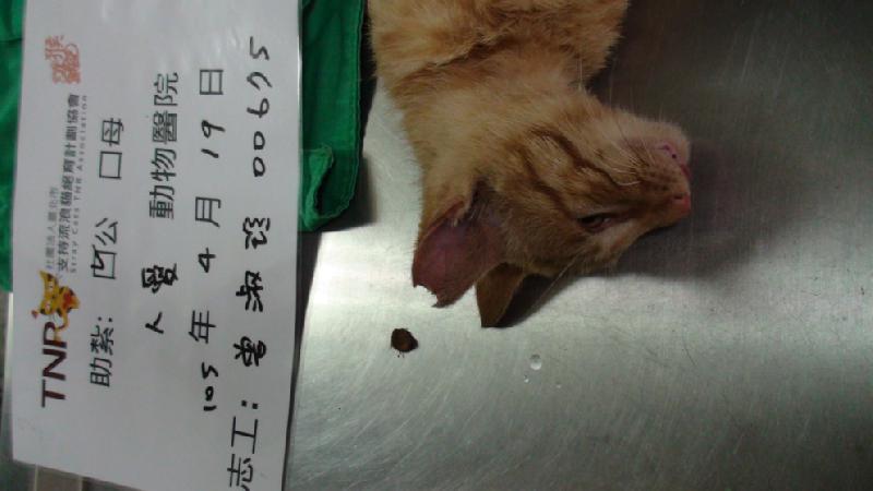 花色: 橘色虎斑 誘捕地點: 彰化縣伸港鄉曾家社區