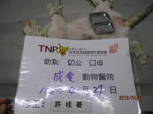 結紮醫院: 成愛動物醫院 結紮費用: 1000
