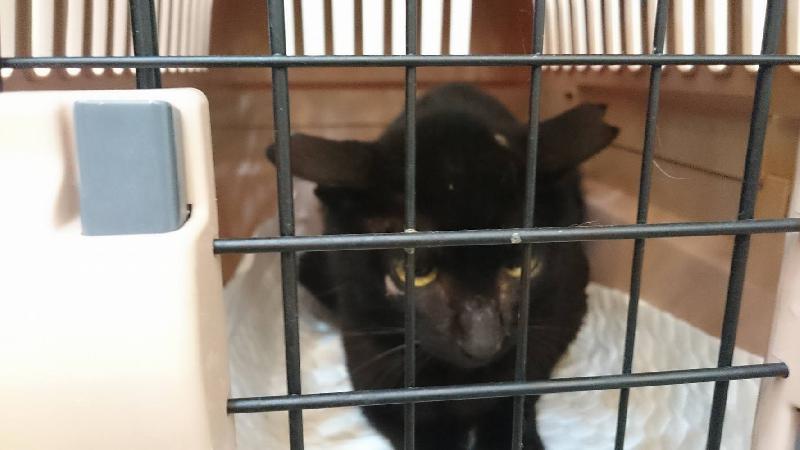 誘捕者暱稱: Mi Go Chuang 性別: 公 花色: 黑色 誘捕地點: 新竹市中華路 結紮醫院: 謙華動物醫院 結紮費用: 800 助紮者: 已付款:黃小毛x3 額外醫療費用申請: 特別說明與誘捕心情: 幾天前被逮捕的大公黑貓。