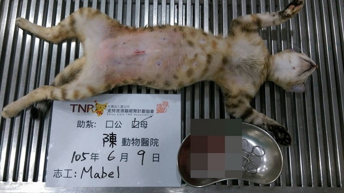 母橘冬天時才剛生完一胎,這次好不容易誘捕到要做結紮手術,醫生發現剛懷孕不久,所以只好做引產手術,希望母橘原放後能好好休養。感謝協會提供平台,也感謝助紮者的愛心。