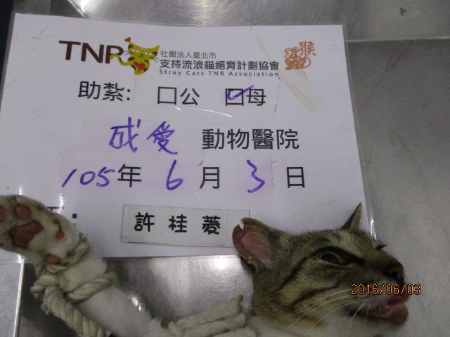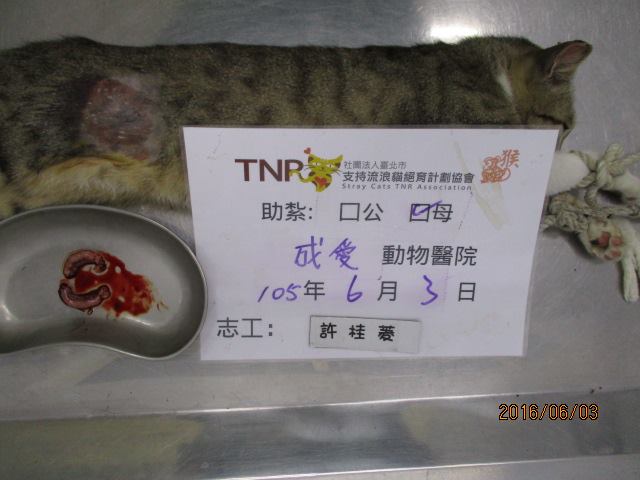 結紮醫院: 成愛動物醫院 結紮費用: 1500