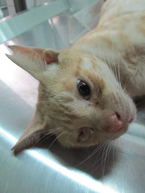 誘捕者暱稱: 雅張 性別: 公 花色: 奶油色虎斑紋 誘捕地點: 屏東市自由路85號 結紮醫院: 愛生動物醫院 結紮費用: 900 助紮者: 已付款:Yukin Changx1, 黃小福x1, 夏秋冬x1, Rachel Chiux1, chiux1 額外醫療費用申請: 醫生判斷眼睛應該是小時候感染、結膜受傷之後癒合,造成眼睛縮小。