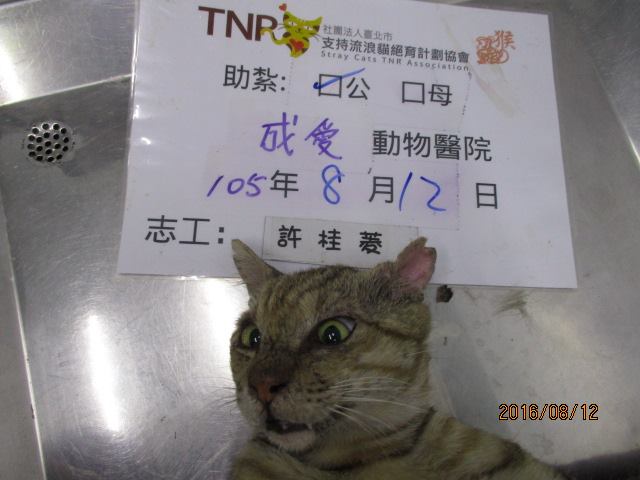 志工中途街貓的租屋處附近的街貓群,之前房客及鄰居都會餵食,目前有二隻公貓完成TNR,由於貓群中的母貓不是懷孕就是在哺乳,再來就是未滿四個月的小貓仔,於是先將成年公貓進行結育!