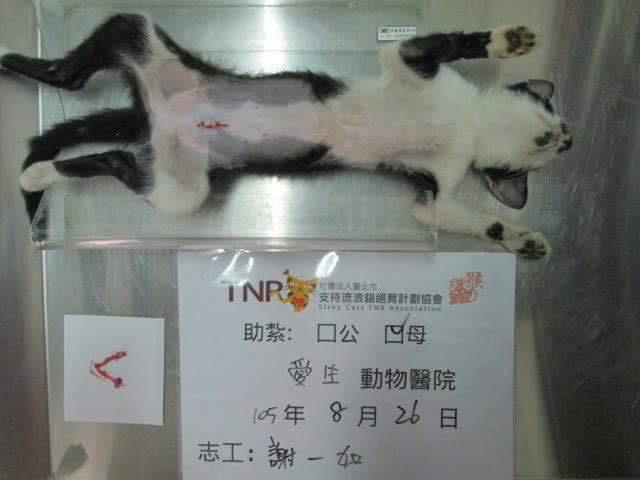 誘捕者暱稱: 謝凱伊 性別: 母 花色: 賓士 誘捕地點: 內埔農會超市對面三角公園 結紮醫院: 愛生動物醫院 結紮費用: 1500 助紮者: 已付款:Queenie Wangx1, THx1, Coco Chienx3 額外醫療費用申請: 特別說明與誘捕心情: 這應該是我有史以來抓貓抓的最離奇的一次也是最艱難的。農會超市對面的三角公園早上都有好幾個攤位賣水果賣早餐賣衣服,因為賣吃的都會有老鼠所以其中一個攤販設置了捕鼠籠結果沒想到抓到一隻貓這隻貓非常的害怕ㄧ動也不敢動、當然捕鼠籠也非常小(長32x寬16x高16)他也不能轉身。原本攤販的意思是要讓他曬太陽曬到死、我苦苦哀求了一個上午都不願意把貓讓我帶走也不妥協 接近中午趁她收攤不注意偷走這隻貓、當然捕鼠籠也還在我這。直接送到醫院節紮檢查沒有任何的外傷、但是營養不良非常的瘦小、26送紮大概9/2出院。謝謝大家支持流浪貓節育。出院後、我會把貓移至我的餵養區