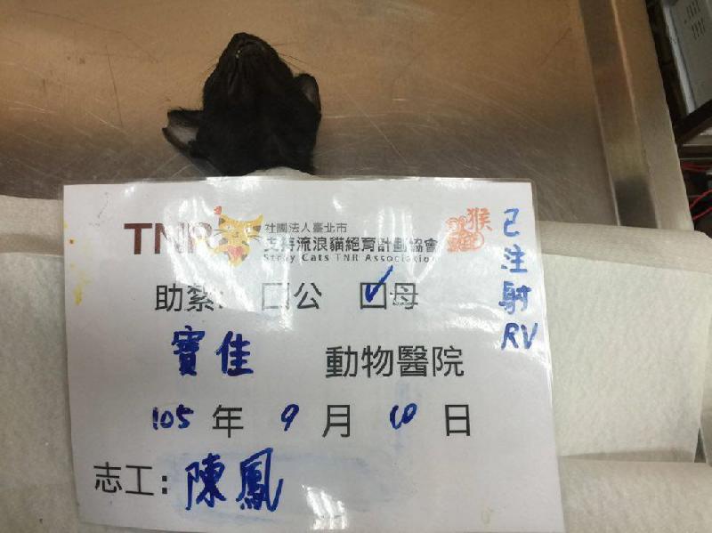 黑貓是最近才出現在我的餵食區域附近,都跟在另一隻很兇的虎斑貓後頭,原想誘捕虎斑貓,虎斑太小心了,不願進籠,黑貓幾次猶豫後終於進籠了,紮後醫師告知是母貓,太好了,紮了才不會生生不息啊!謝謝協會幫忙,及各位慷慨解囊,感謝您們!