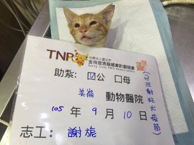 誘捕者暱稱: 謝旎 性別: 公 花色: 橘子虎斑 誘捕地點: 中華市場 結紮醫院: 美崙動物醫院 結紮費用: 800 助紮者: 已付款:ozakex1, ozakex1, ozakex1 額外醫療費用申請: 特別說明與誘捕心情: 這一批的小貓貓好多橘貓