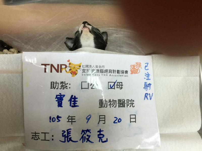 小黑白是觀光夜市的浪貓,在那的附近躲躲藏藏的覓食,因為有夜市的關係,所以人潮多,常常有一餐沒一餐的,因此我都會路過去餵食,因為捕到小黑白時,她不親人,那時也還小,不適合絕育,所以捕抓回安置照顧,照顧已有兩個月左右,還是不親人,小黑白屬於情緒非常緊張的貓咪,她現在也已到適合絕育期,所以幫他執行TNVR送去絕育