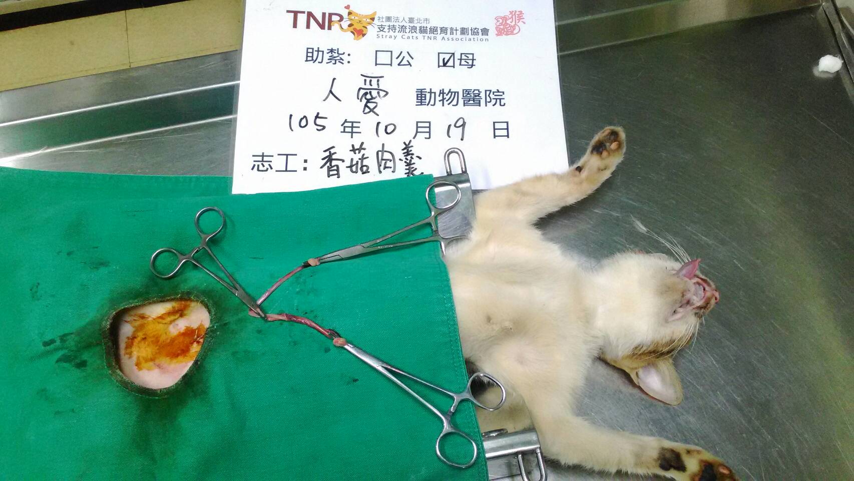 結紮醫院: 人愛動物醫院 結紮費用: 1200