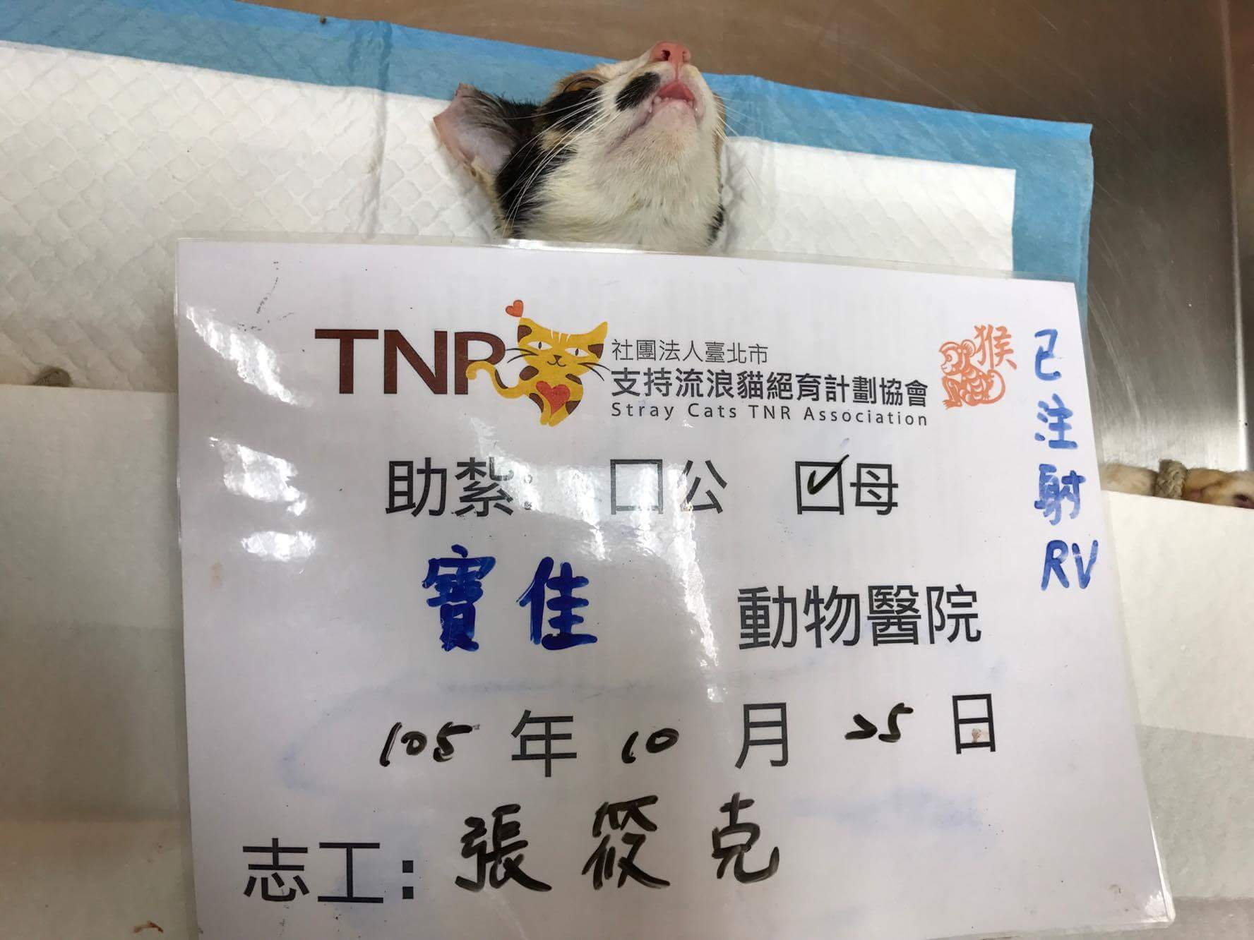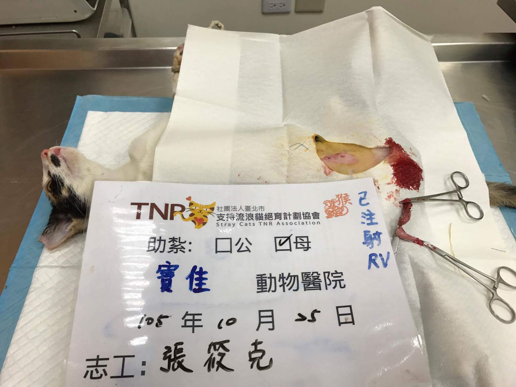 結紮醫院: 寶佳動物醫院 結紮費用: 1500