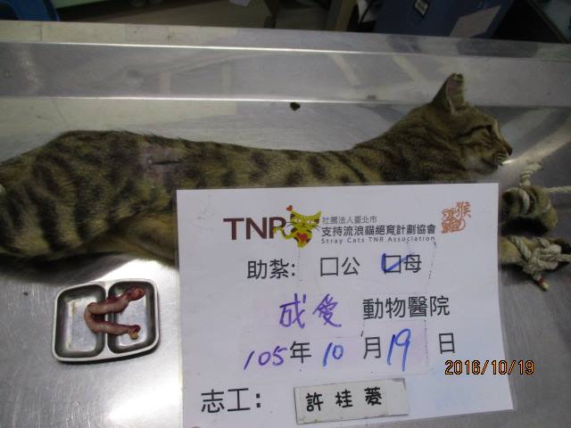 結紮醫院: 成愛動物醫院 結紮費用: 1500