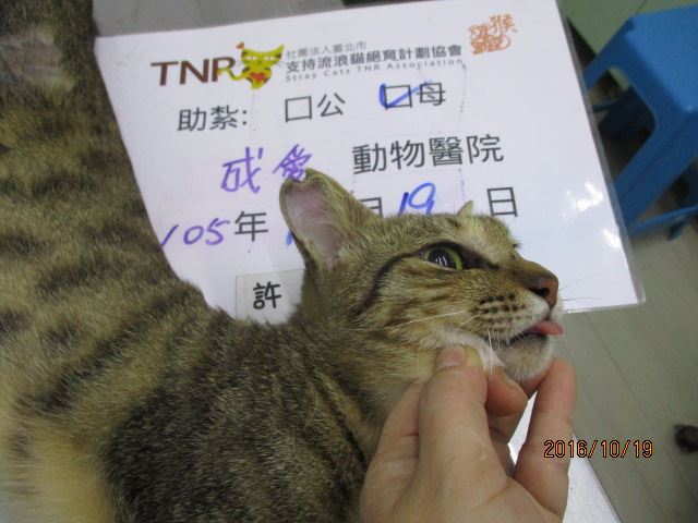 志工安置中途街貓的租屋處附近的街貓群,年初生產之同胎3隻虎斑貓仔已長至6個月,故進行誘捕節育,已完成1公貓1母貓TNR,這隻是同胎的第3隻!