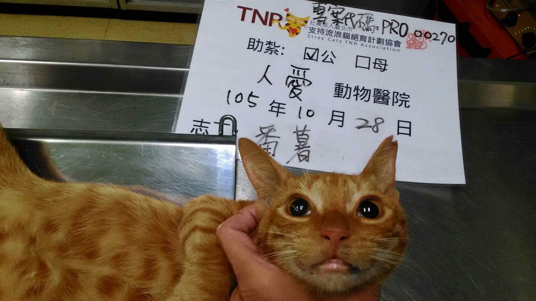 花色: 虎斑橘貓 誘捕地點: 高雄市小港區港後路