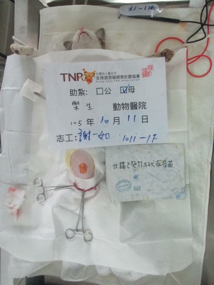 結紮醫院: 樂生動物醫院 結紮費用: 1200