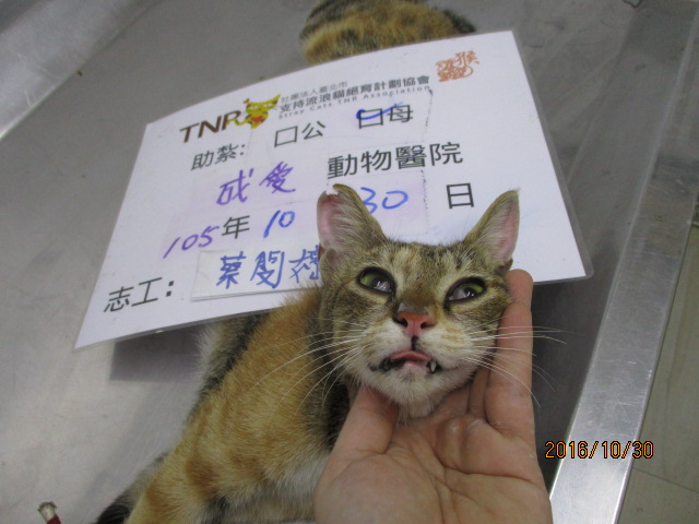從母貓開始餵養到小貓,母貓不見而只剩下小貓;從小就謹惕心很高,餵養好一陣子才開始比較親近人,住家附近除了這隻小貓外還有很多野貓,為免有更多的浪貓,趁著假日趕緊帶去醫院結紮。
