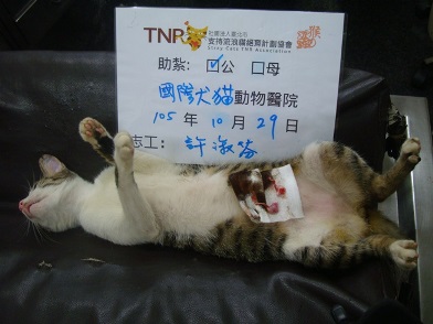已餵食這隻浪貓一段時間,牠比較不怕我了,也已經長大,就誘捕結紮,利用結紮時,順便檢查身體狀況及自費驅蟲除蚤。希望善心人士能支持毛小孩結紮,也謝謝協會幫忙募款,幫助貓咪們,謝謝!