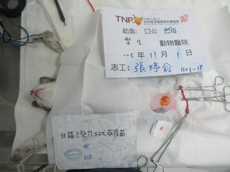 結紮醫院: 樂生動物醫院 結紮費用: 1200