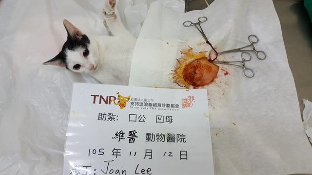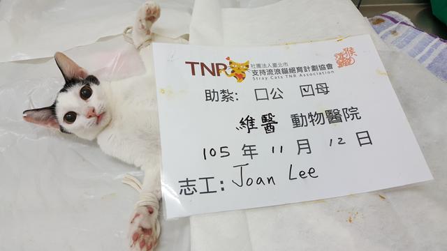 趁著三天連假出門多抓貓,這隻白底黑母貓, 是從小時候母貓開始餵養到現在,餵養好一陣子才開始比較親近人,為免有更多的浪貓,趁著假日趕緊誘捕帶去醫院結紮。感謝大家的愛心幫助他的結紮費用
