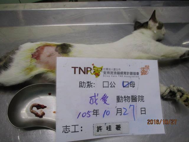 結紮醫院: 成愛動物醫院 結紮費用: 1500