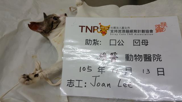 這隻貓咪是在公園裡面發現的, 捕捉時是由很常把便當菜給牠吃的大姊幫忙進行誘補,附近居民常丟廚餘魚骨餵食,但卻無節育觀念, 再次感謝協會提供資源平台,也感謝贊助民眾的小額贊助!! 謝謝~~