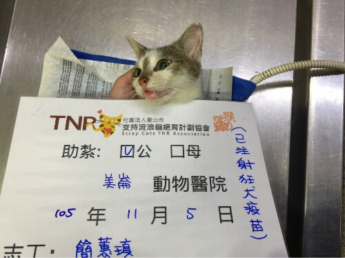 花色: 白底虎斑 誘捕地點: 花蓮縣仁里